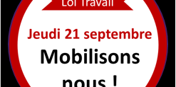 Loi travail : mobilisons-nous le 21 septembre 2017 Ces ordonnances ne vont pas créer de l’emploi mais en faciliter la destruction. Nous sommes dans une logique purement financière mettent en danger la santé des salariés. Allez-vous prendre ce risque pour vous et vos enfants ?